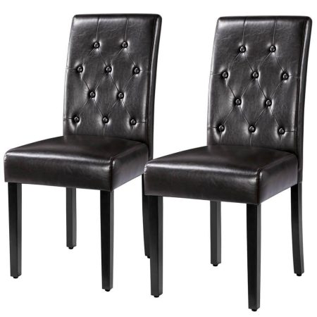 $98.002pcs Dining Chair Button Tufted Padded Faux Leather/PU Leather Kitchen Chair Tall Back Dining Room Side Chair with Solid Wood Legs About this item: MULTIPLE USE: Sold in a set of 2 chairs. Designed and manufactured elaborately, these dining chairs could be a good choice when you are looking for…