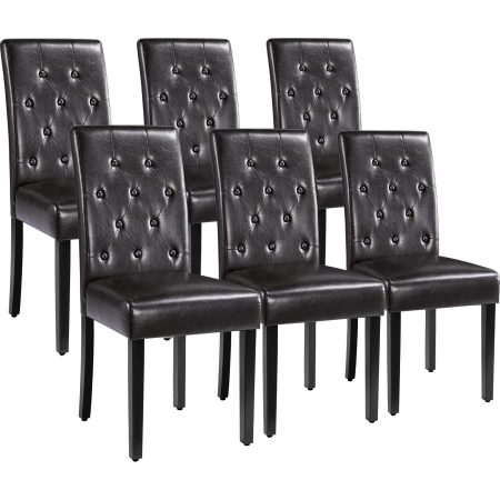 $80.00Set of 6?Button Tufted?Faux Leather Dining Chairs, Padded High Back Kitchen Chairs with Solid Wood Legs For Home, Restaurants, Cafe, Brown About this item: Low Maintenance: The water-resistant faux leather upholstery can be easily wiped clean with a damp rag and a few drops of cleaner, removing accidental spills easily.…