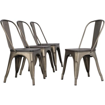 $62.00Metal Dining Chairs w/Wooden Seat,?Classic Chic Bar Chairs,?Trattoria Bistro Cafe Shop Stackable Side Chairs,?Set of 4?Stools About this item Stackable design with scratch-proof pads: You can stack these armless chairs on top of the other to save space for unused time. Rubber feet under the chair legs keep floors from…