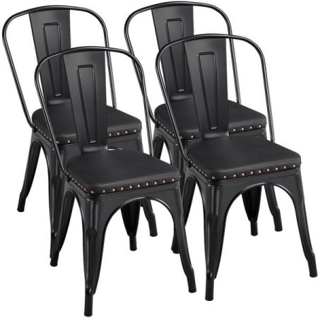 $88.00Pack of 4 Metal Dining Chairs Industrial Style Stackable Kitchen Chairs Vintage Riveted Decoration Soft Cushioned for Indoor Outdoor Bistro Cafe Black About this item Set of 4 chairs: As a perfect set of kitchen furniture, our dining chairs are sold in 4 pieces with good value, ideally suitable for…