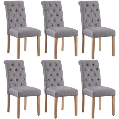 $80.00Set of 6?Button Tufted?Faux Leather Dining Chairs, Padded High Back Kitchen Chairs with Solid Wood Legs For Home, Restaurants, Cafe, Brown About this item: Low Maintenance: The water-resistant faux leather upholstery can be easily wiped clean with a damp rag and a few drops of cleaner, removing accidental spills easily.…