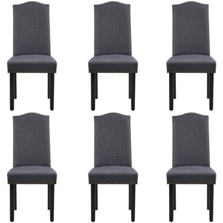 $89.00Classic Dining Chairs Set of 6 Fabric Upholstered Kitchen Chairs Tall Back Dining Room Side Chairs with Nailhead Trim Solid Wood Legs Dark Gray About this item ADJUSTABLE FEET CAPS: The front legs are designed with adjustable feet caps to keep the chairs height balance. Four protective pads on the…
